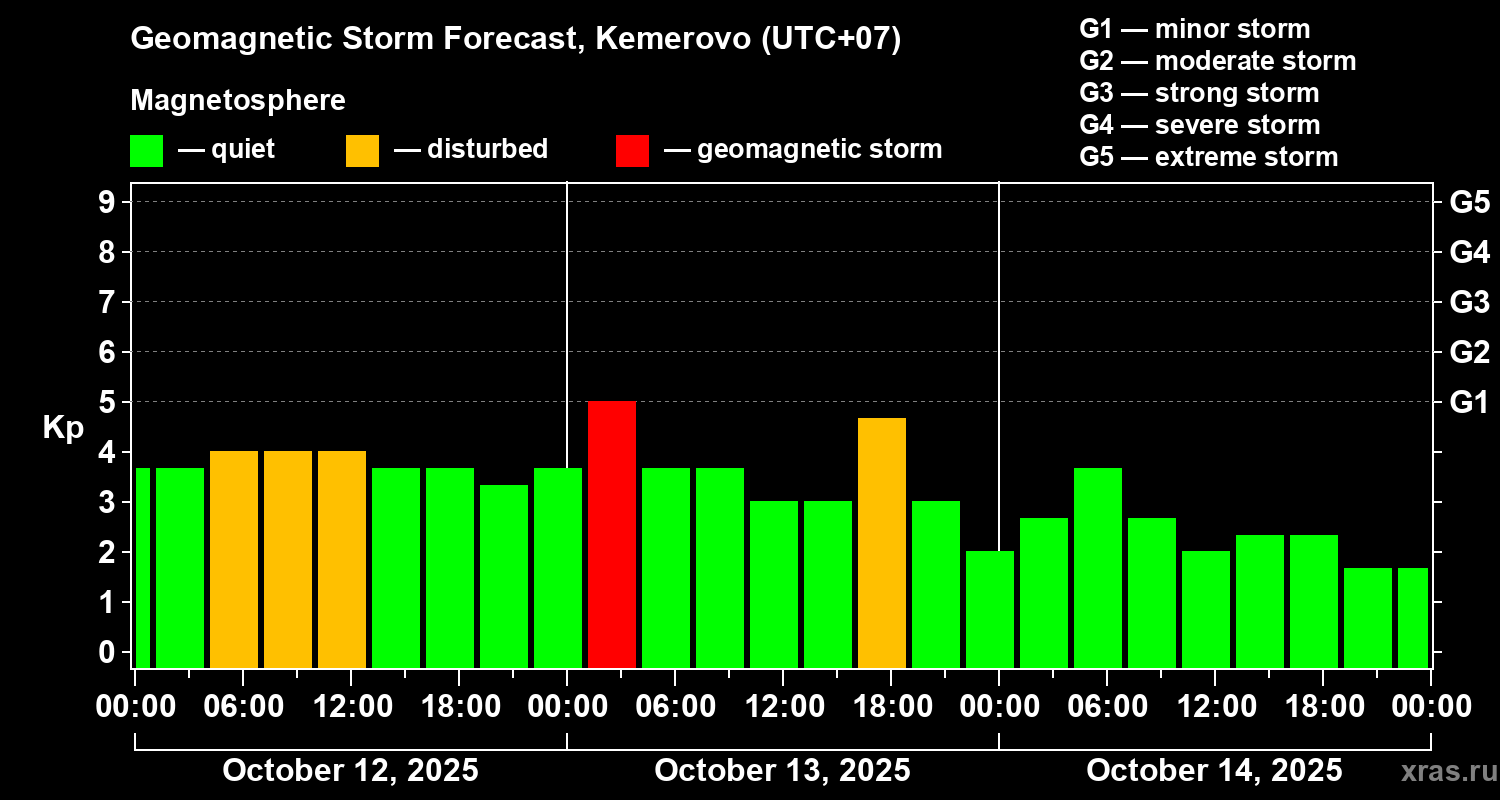 Geomagnetic storm forecast in Kemerovo for Oct 12, 2025