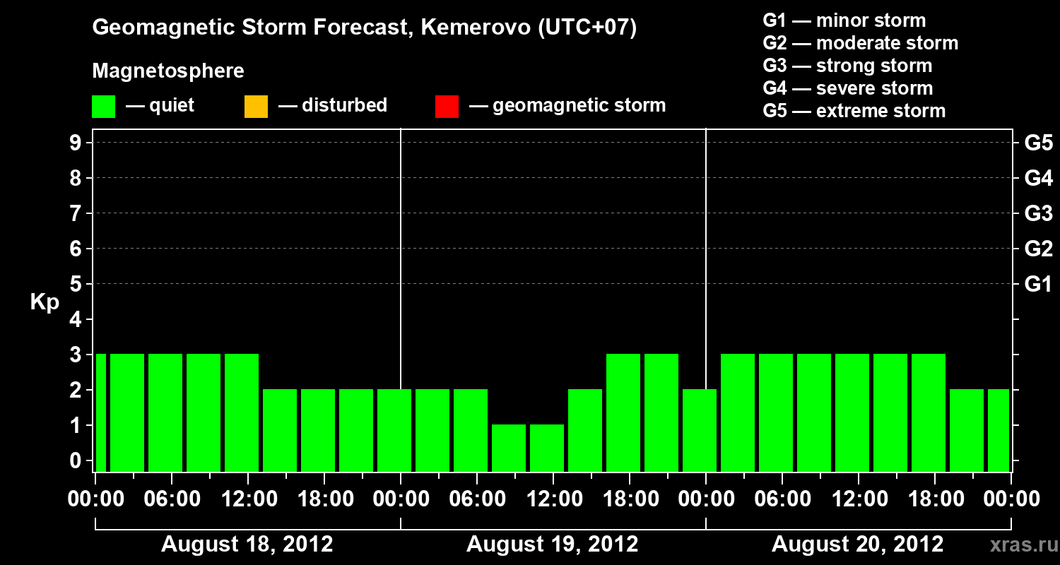 Geomagnetic storm forecast in Kemerovo for Aug 18, 2012