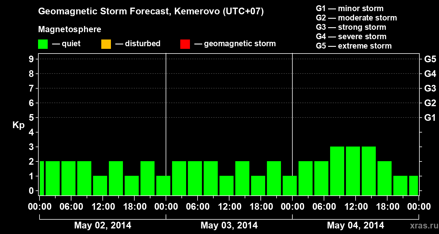Geomagnetic activity forecast in Kemerovo — May 02, 2014