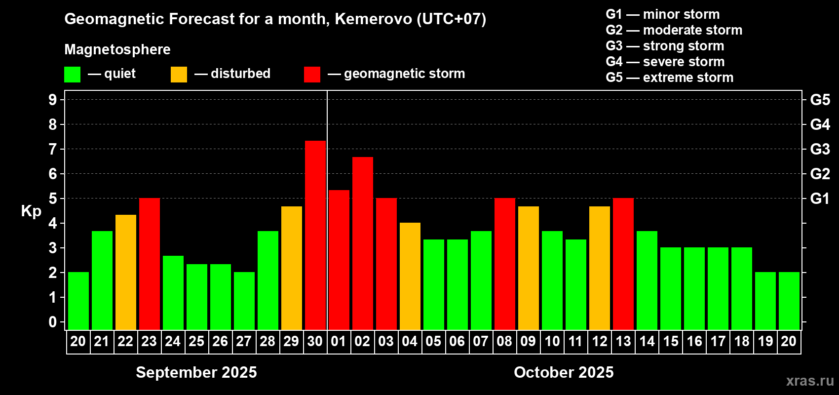 Geomagnetic storm forecast in Kemerovo for Sep 20, 2025