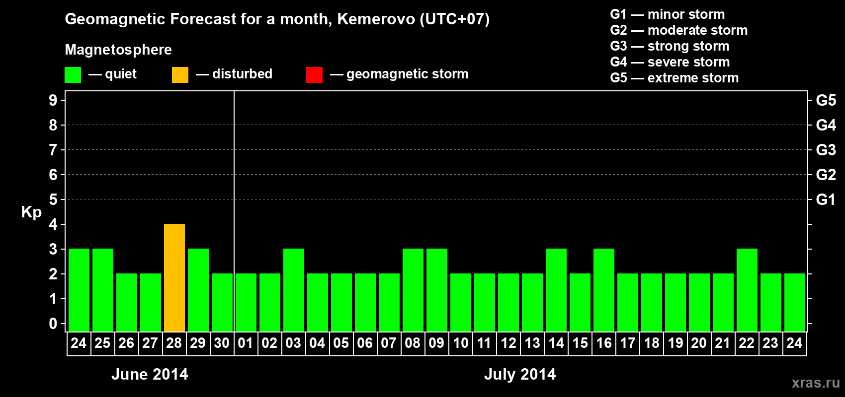 Geomagnetic storm forecast in Kemerovo for Jun 24, 2014