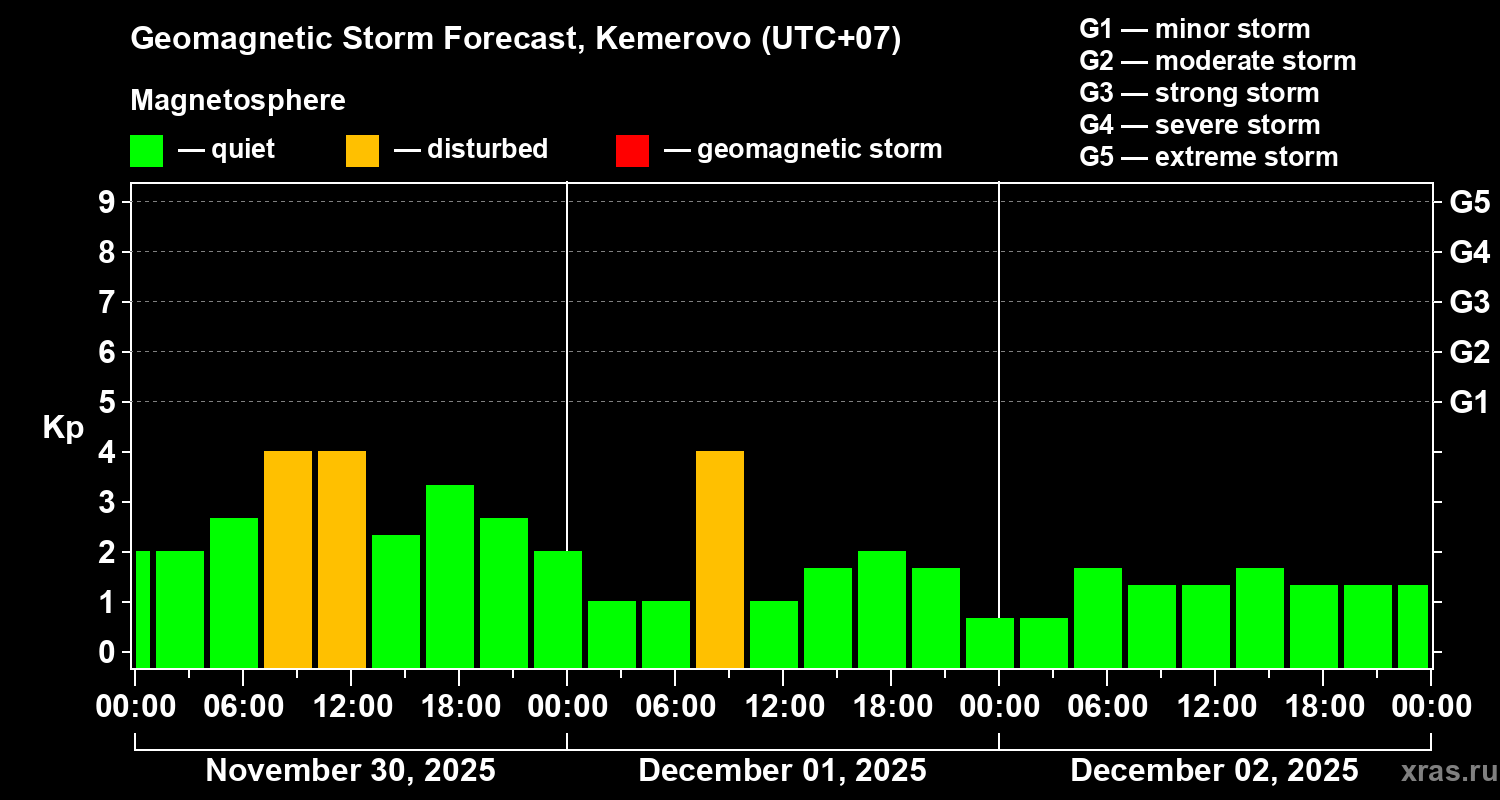 Geomagnetic storm forecast in Kemerovo for Nov 30, 2025