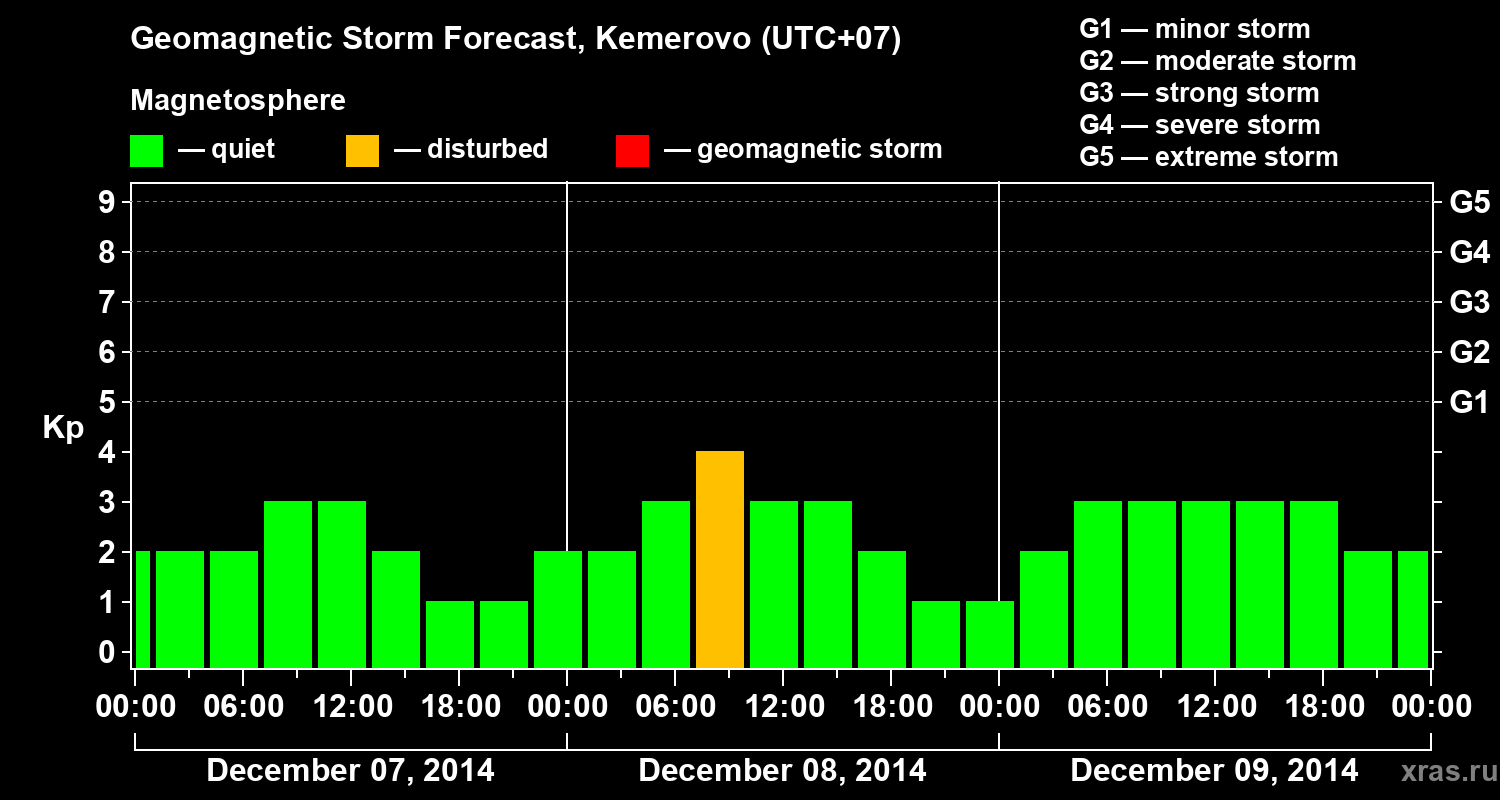Geomagnetic storm forecast in Kemerovo for Dec 07, 2014