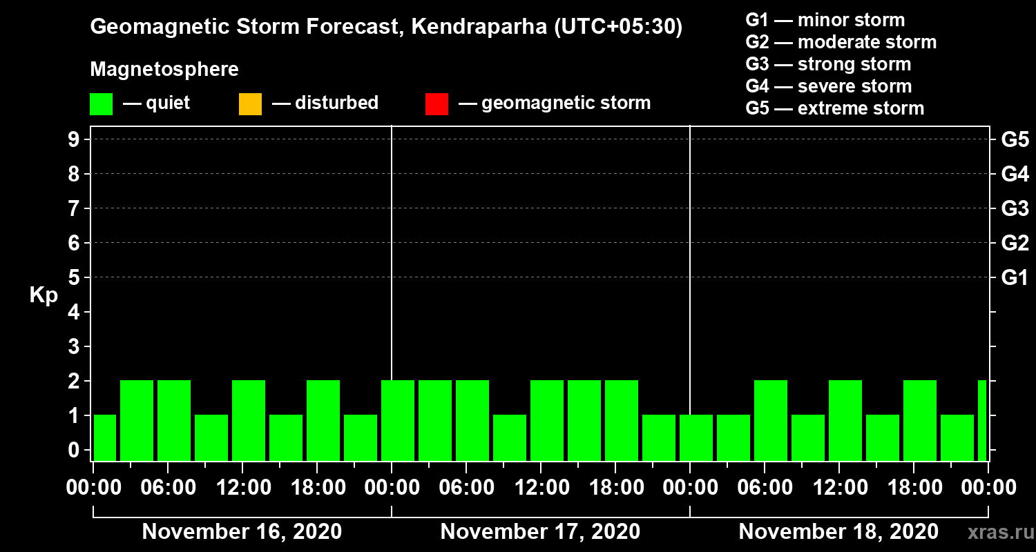 Geomagnetic storm forecast in Kendraparha for Nov 16, 2020