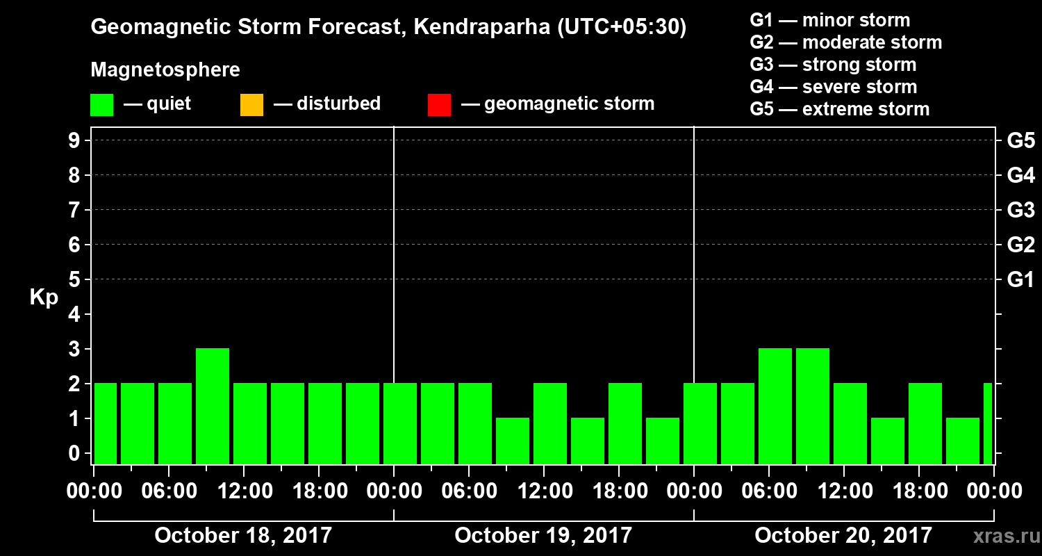Geomagnetic storm forecast in Kendraparha for Oct 18, 2017