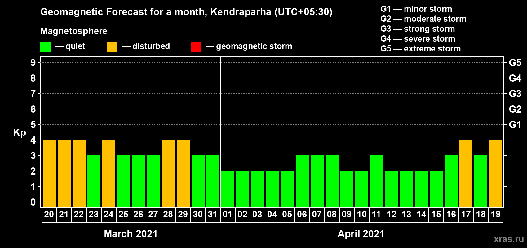 Geomagnetic activity forecast in Kendraparha — Mar 20, 2021