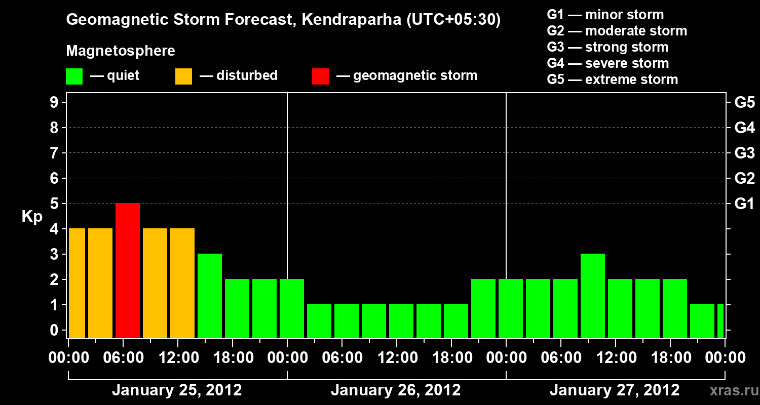 Geomagnetic storm forecast in Kendraparha for Jan 25, 2012