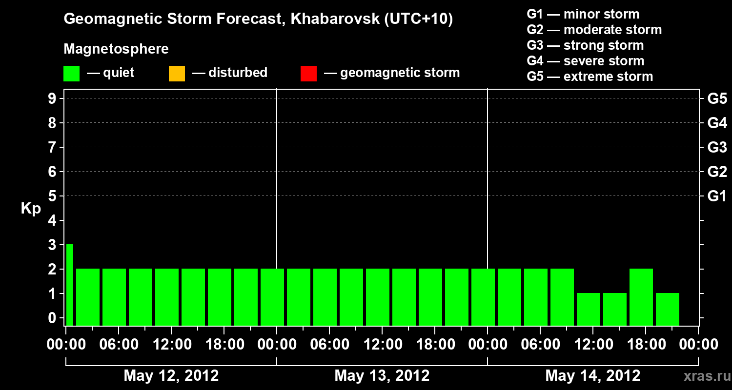 Geomagnetic activity forecast in Khabarovsk — May 12, 2012