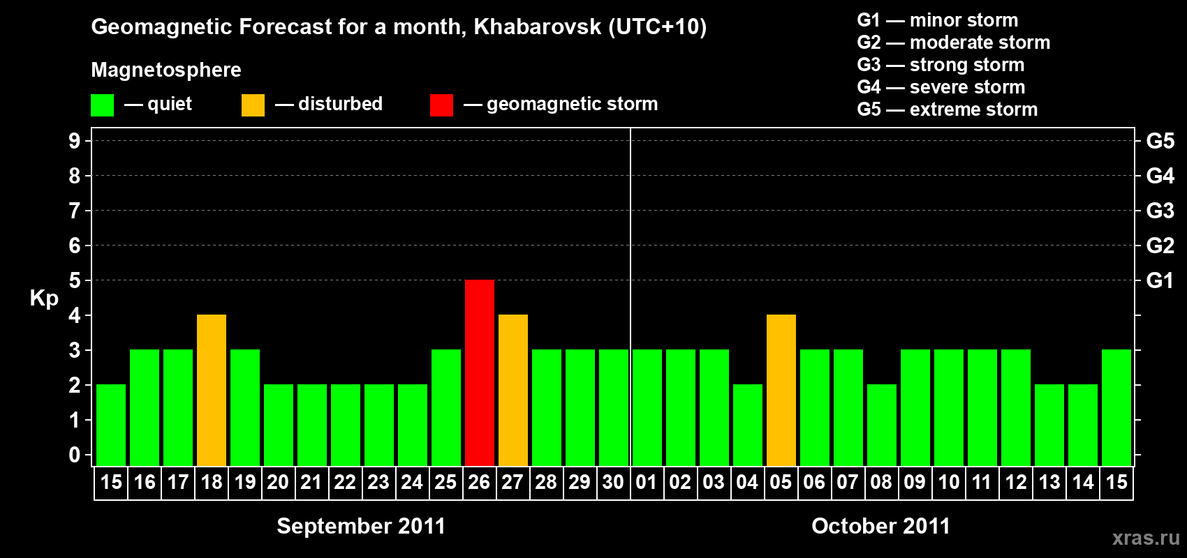 Geomagnetic activity forecast in Khabarovsk — Sep 15, 2011
