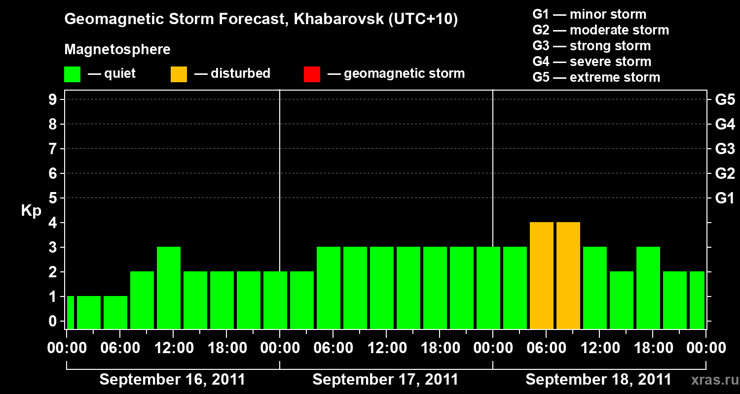 Geomagnetic activity forecast in Khabarovsk — Sep 16, 2011