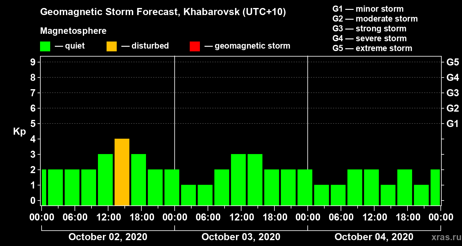 Geomagnetic activity forecast in Khabarovsk — Oct 02, 2020