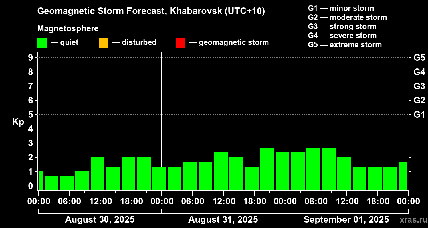 Geomagnetic storm forecast in Khabarovsk for Aug 30, 2025
