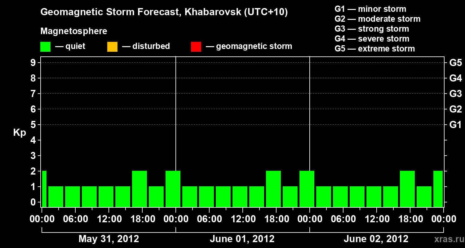 Geomagnetic activity forecast in Khabarovsk — May 31, 2012