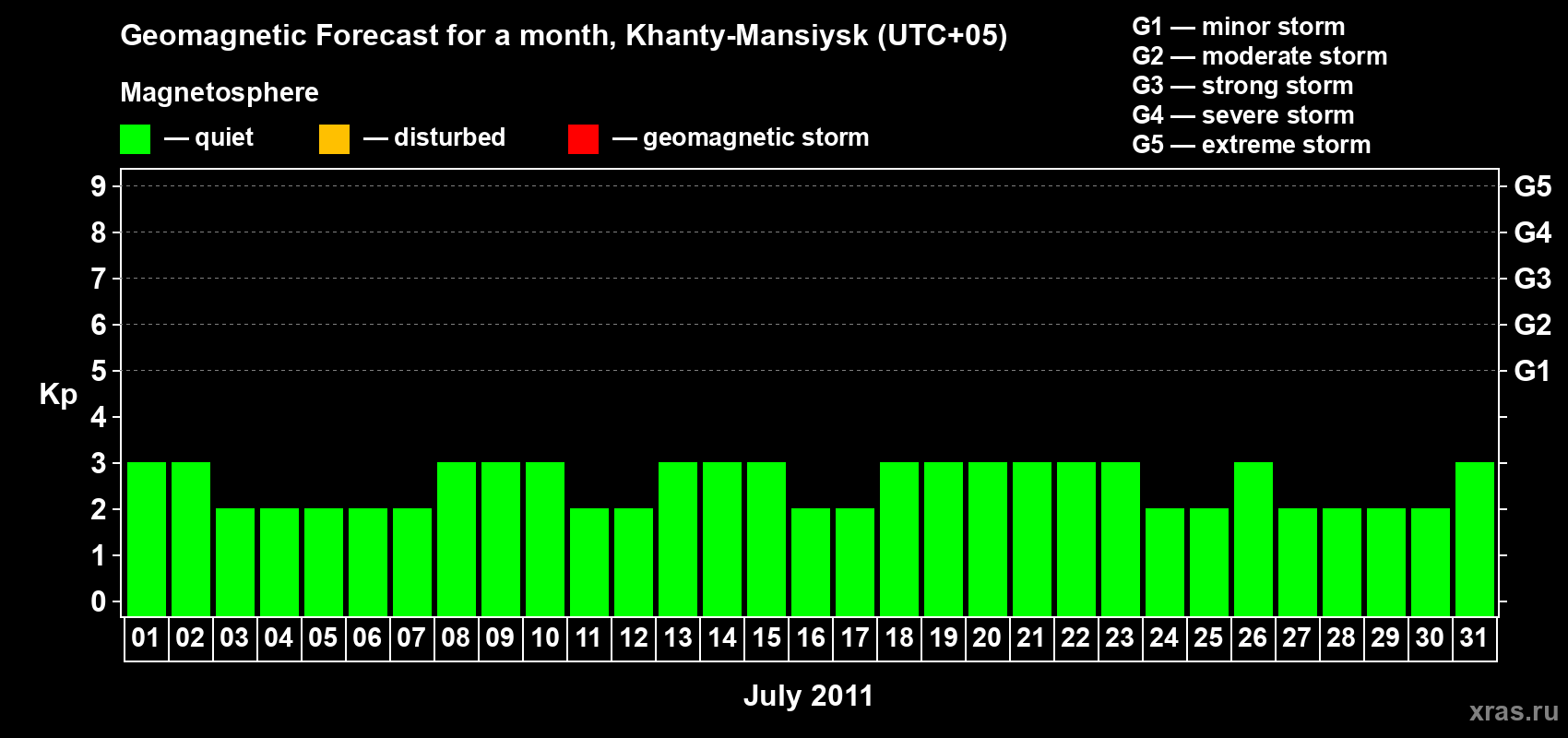 Geomagnetic storm forecast in Khanty-Mansiysk for Jul 01, 2011