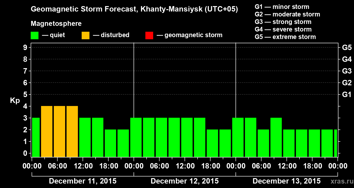 Geomagnetic activity forecast in Khanty-Mansiysk — Dec 11, 2015
