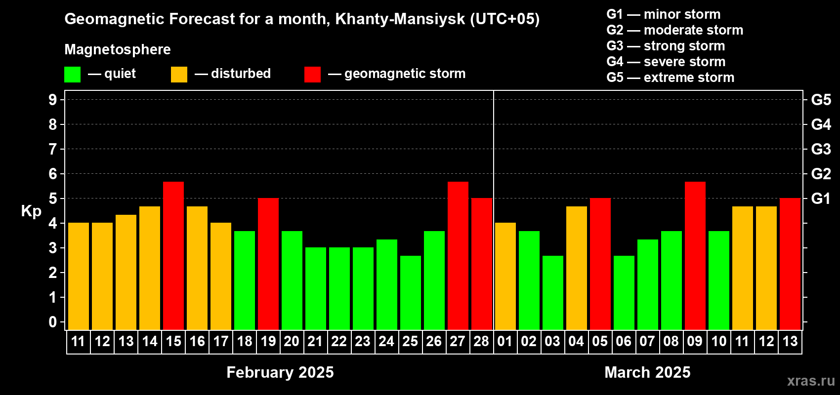 Geomagnetic activity forecast in Khanty-Mansiysk — Feb 11, 2025