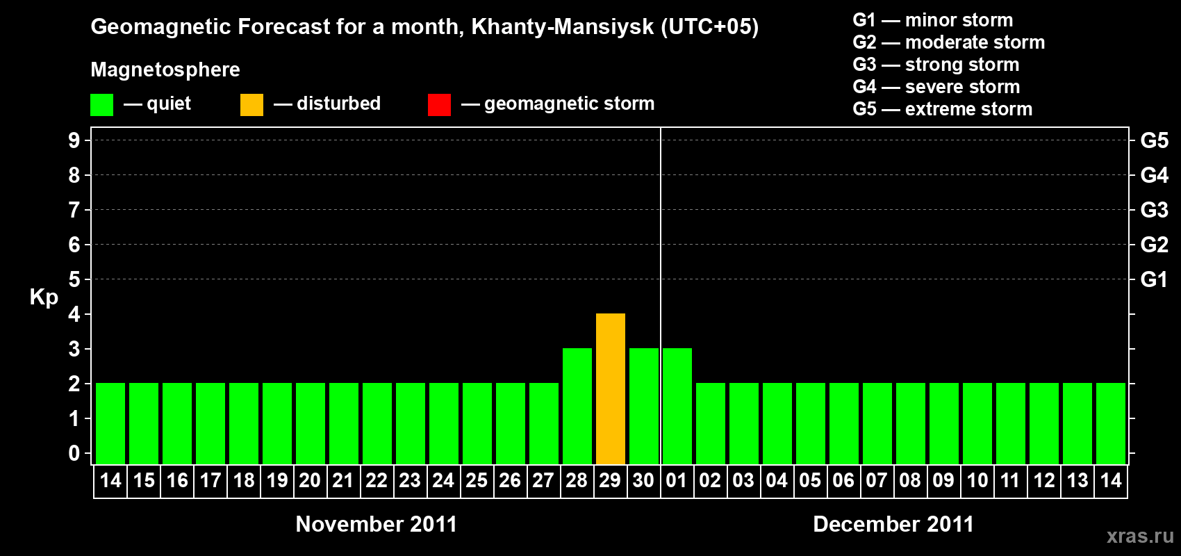 Geomagnetic storm forecast in Khanty-Mansiysk for Nov 14, 2011