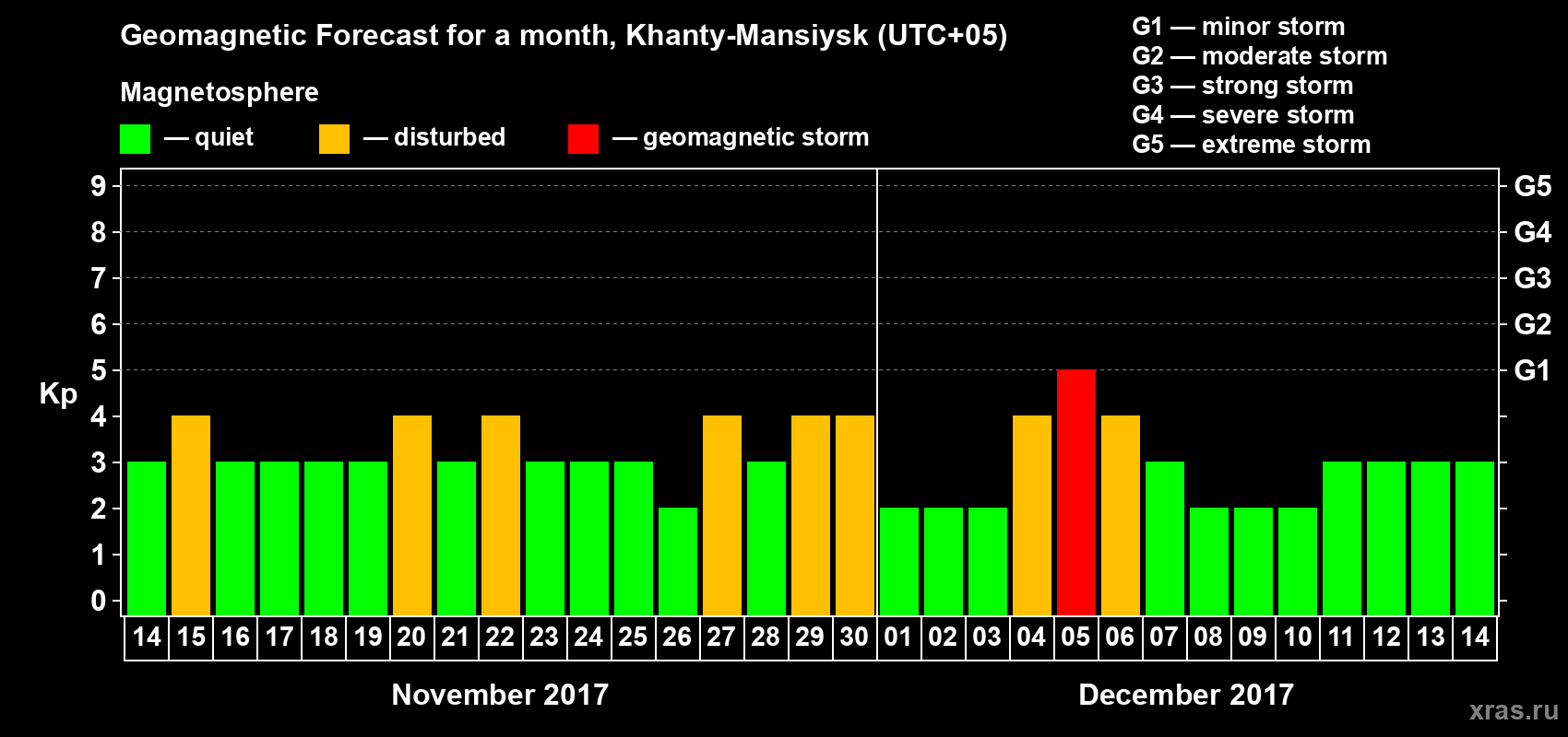 Geomagnetic activity forecast in Khanty-Mansiysk — Nov 14, 2017