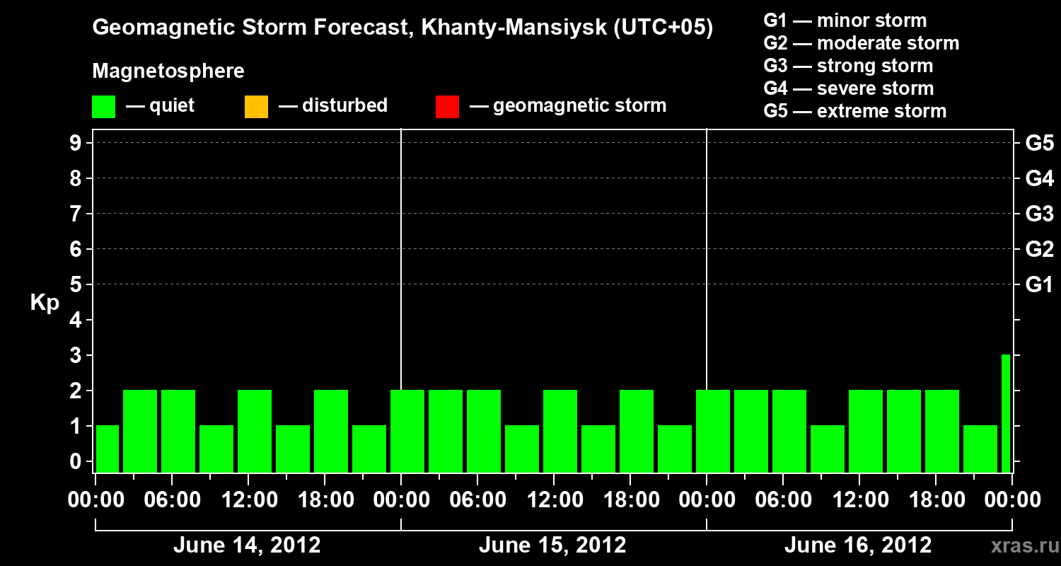 Geomagnetic storm forecast in Khanty-Mansiysk for Jun 14, 2012