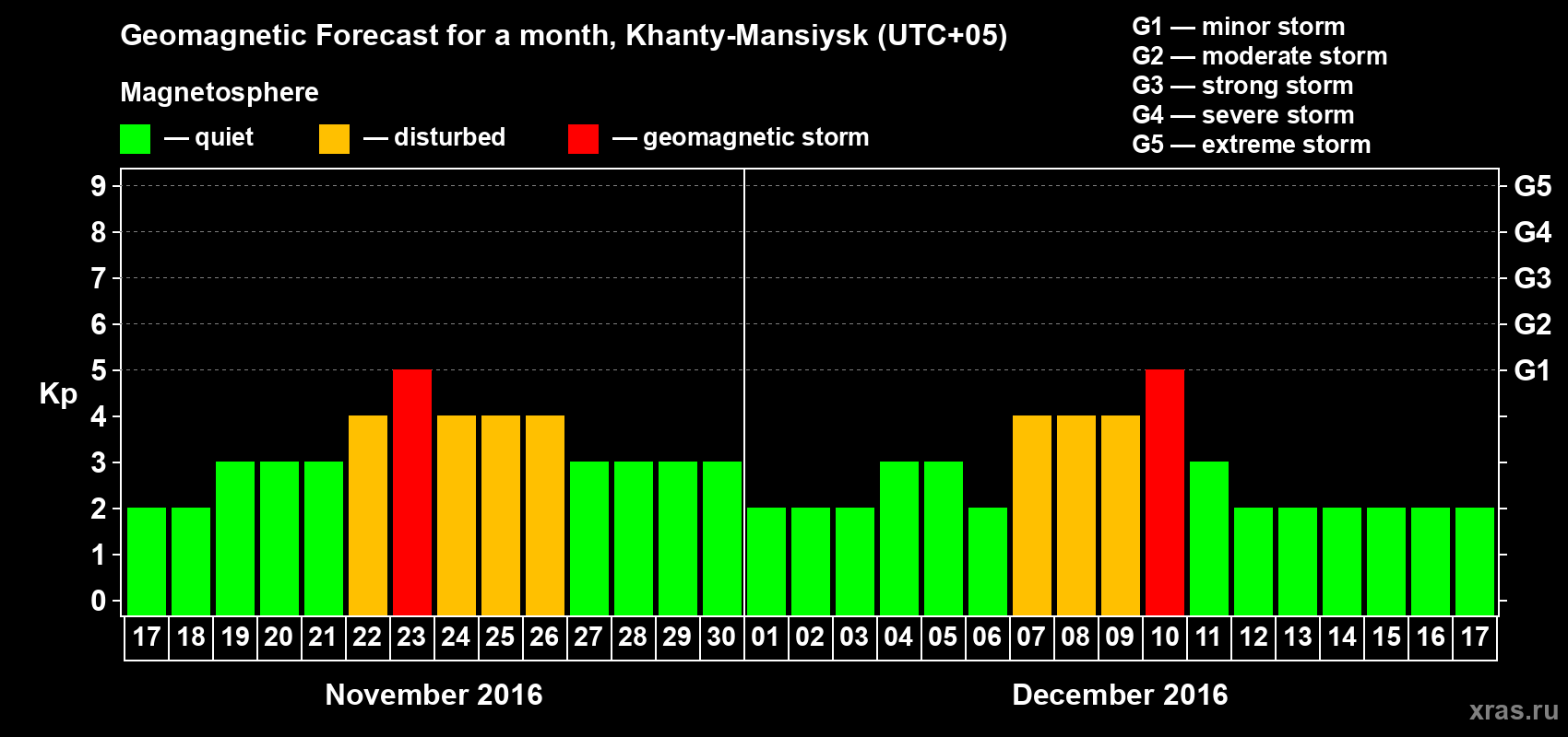 Geomagnetic storm forecast in Khanty-Mansiysk for Nov 17, 2016