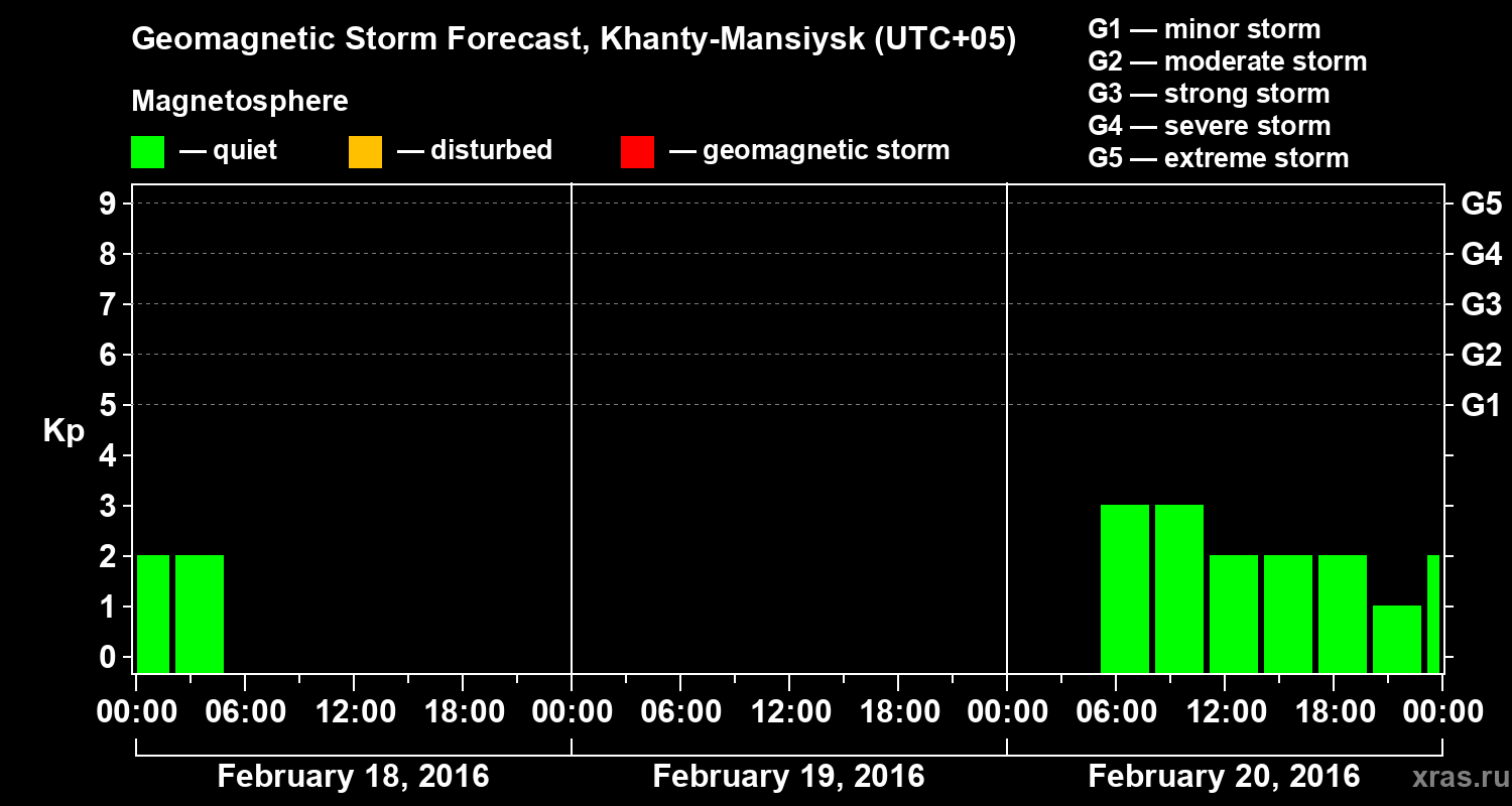 Geomagnetic activity forecast in Khanty-Mansiysk — Feb 18, 2016