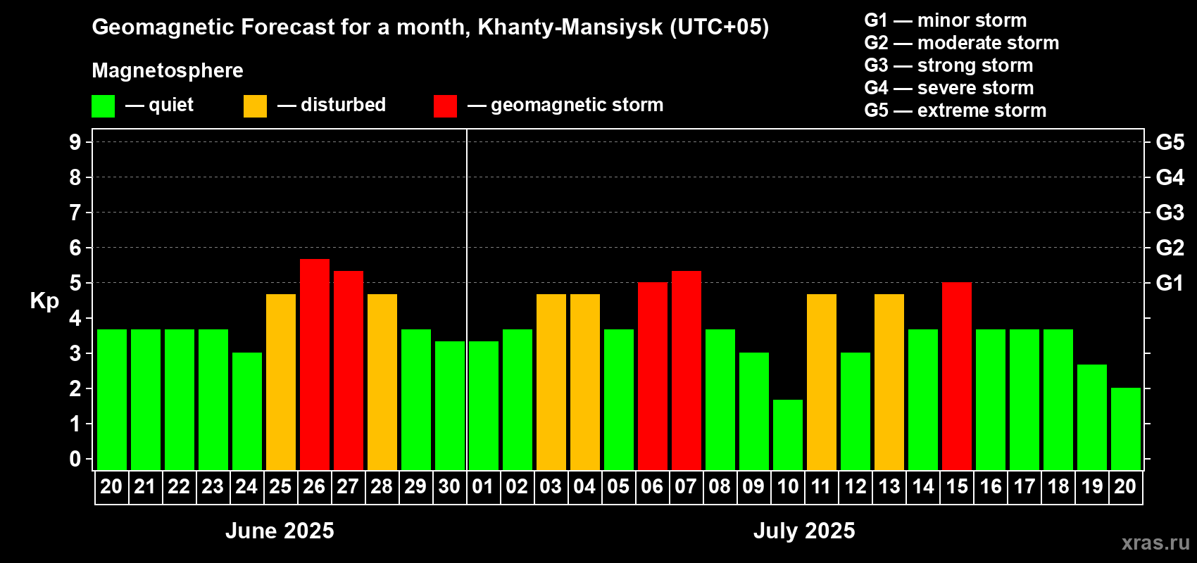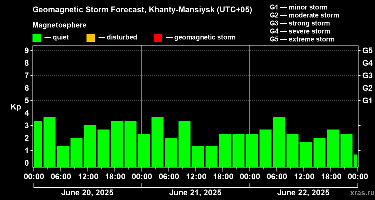 Geomagnetic activity forecast in Khanty-Mansiysk — Jun 20, 2025
