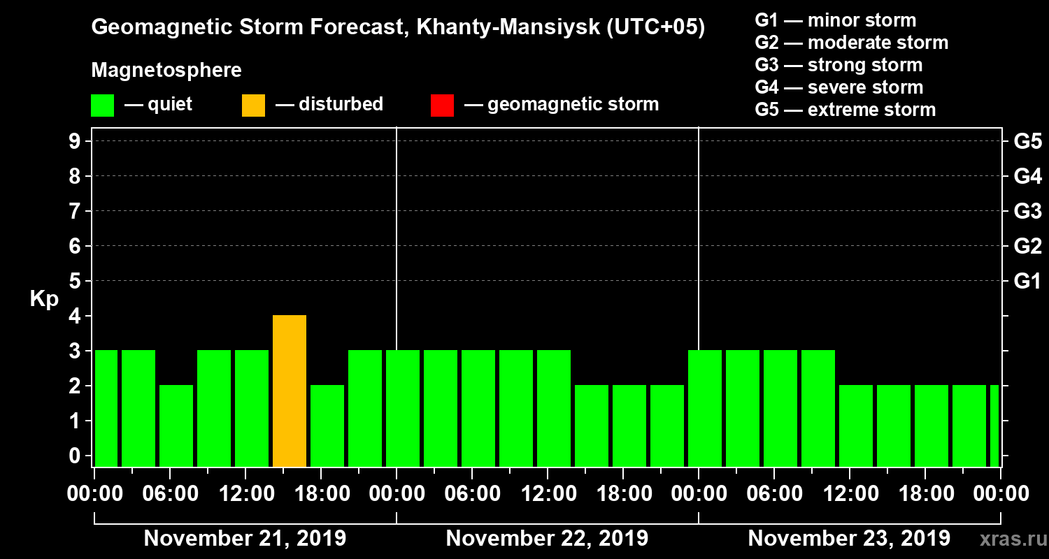 Geomagnetic activity forecast in Khanty-Mansiysk — Nov 21, 2019