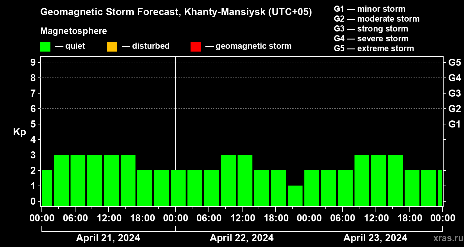 Geomagnetic storm forecast in Khanty-Mansiysk for Apr 21, 2024
