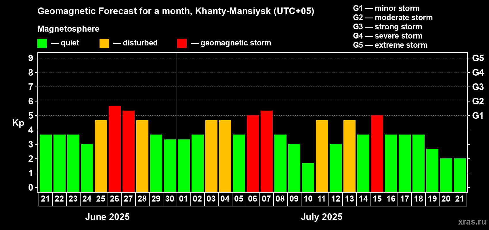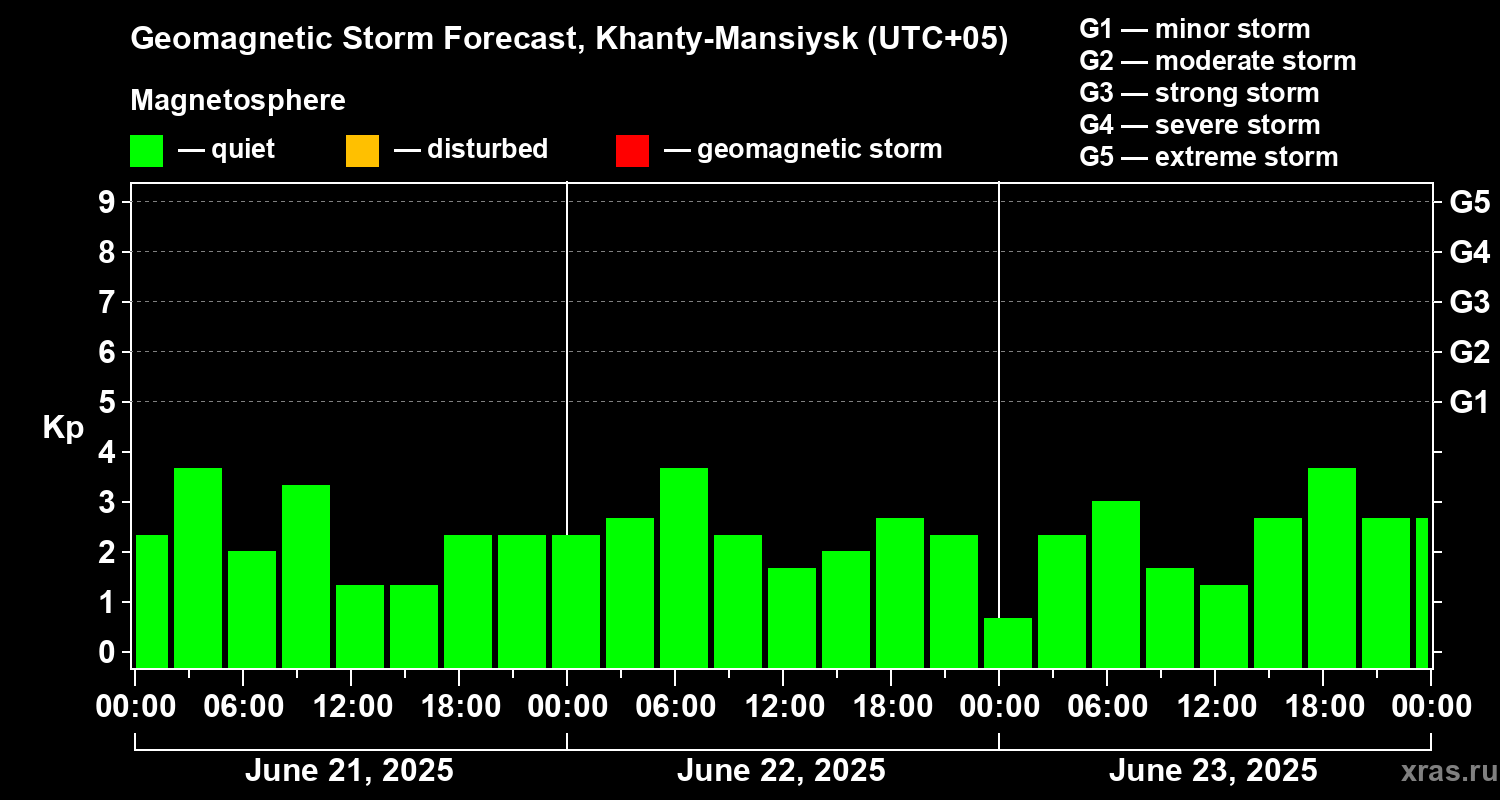 Geomagnetic storm forecast in Khanty-Mansiysk for Jun 21, 2025