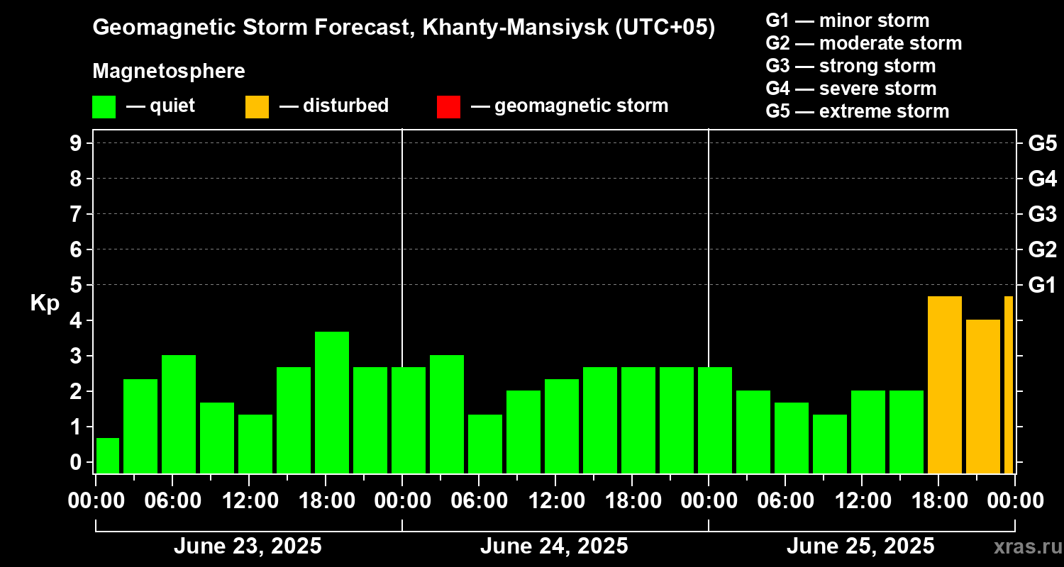 Geomagnetic activity forecast in Khanty-Mansiysk — Jun 23, 2025