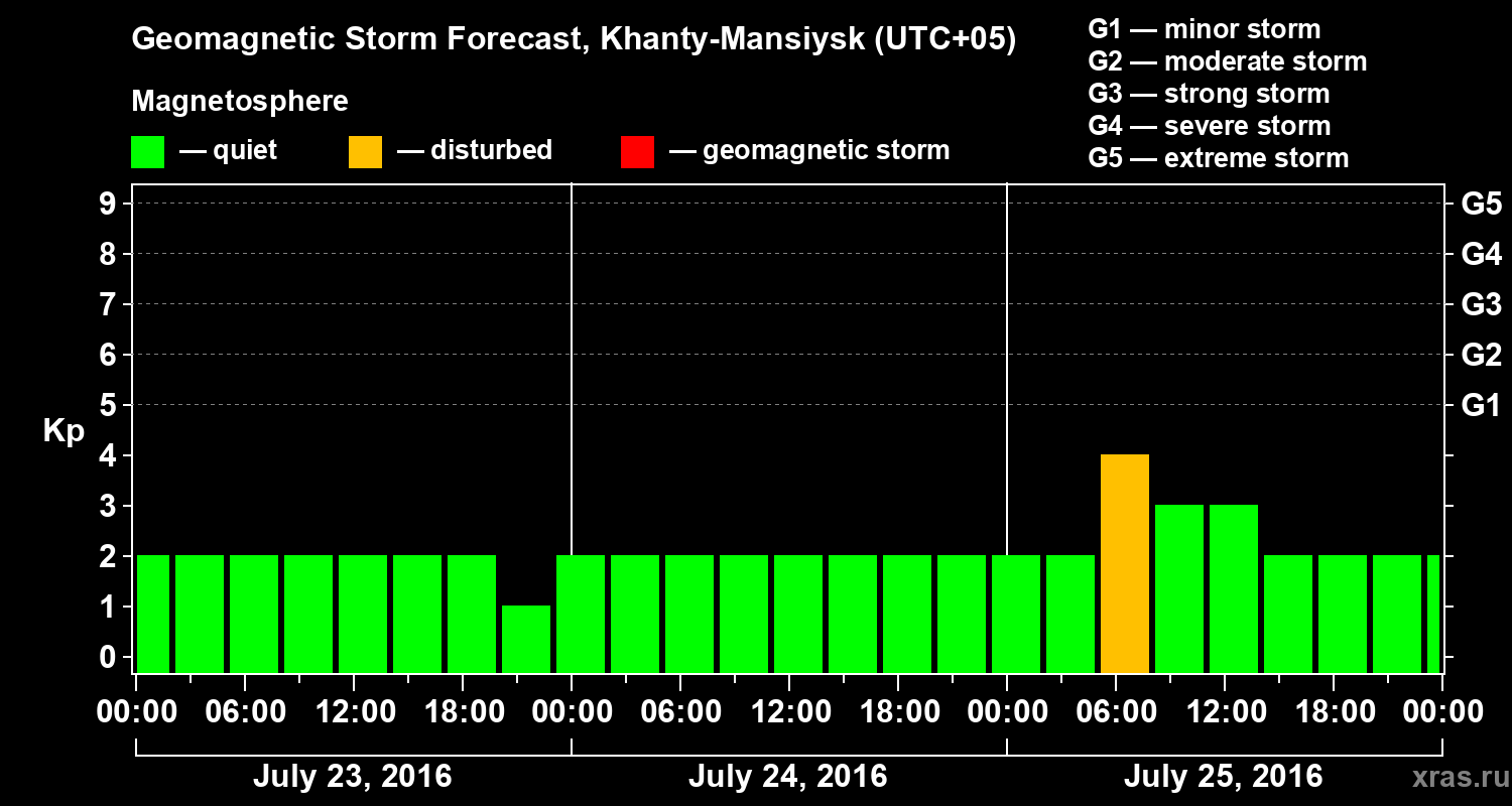 Geomagnetic storm forecast in Khanty-Mansiysk for Jul 23, 2016
