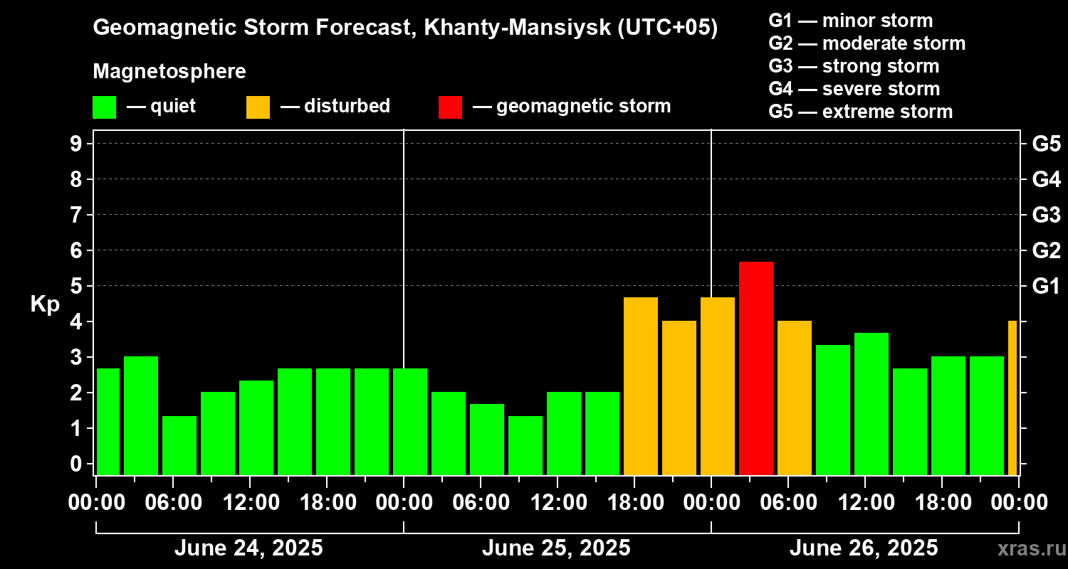 Geomagnetic activity forecast in Khanty-Mansiysk — Jun 24, 2025