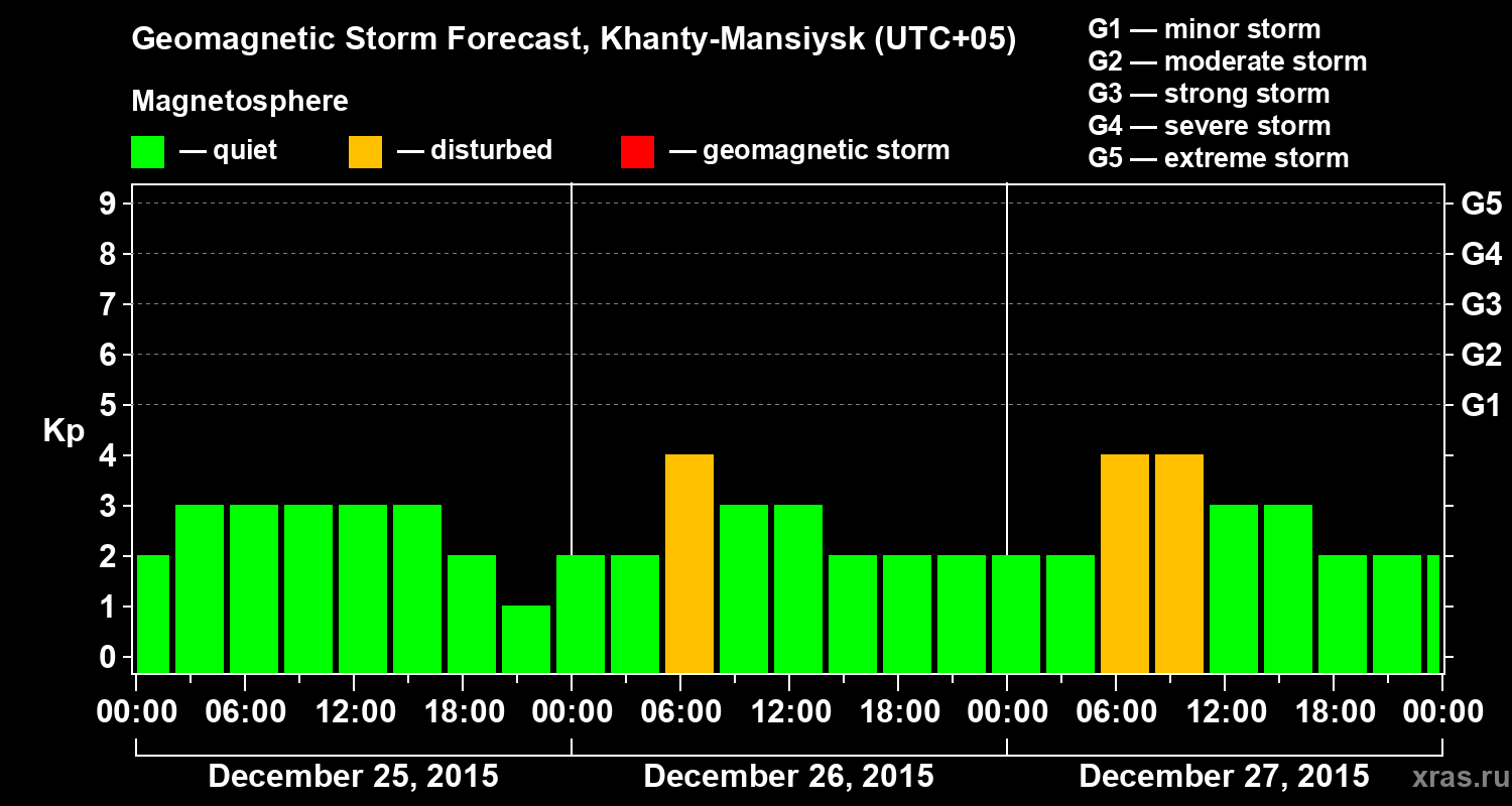 Geomagnetic activity forecast in Khanty-Mansiysk — Dec 25, 2015