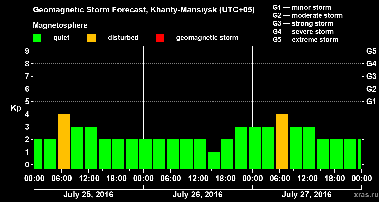 Geomagnetic storm forecast in Khanty-Mansiysk for Jul 25, 2016