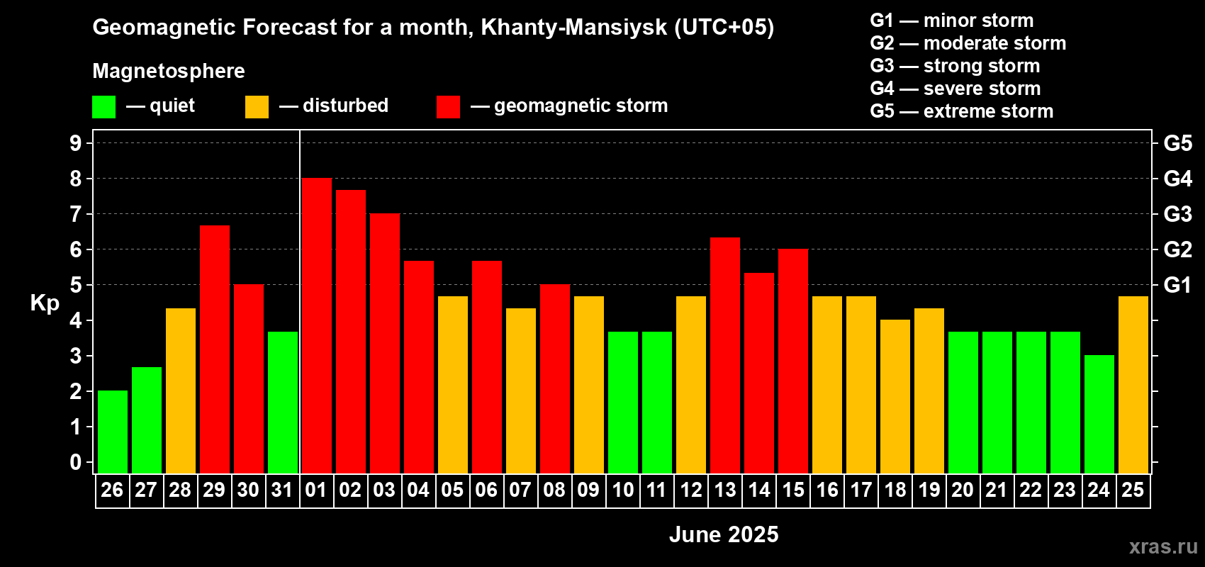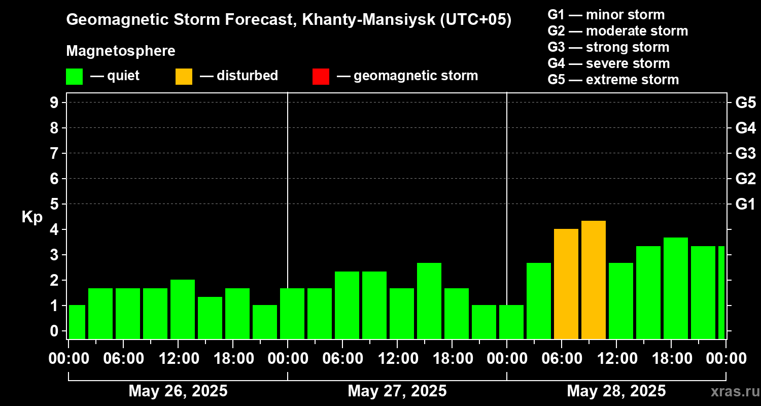 Geomagnetic storm forecast in Khanty-Mansiysk for May 26, 2025
