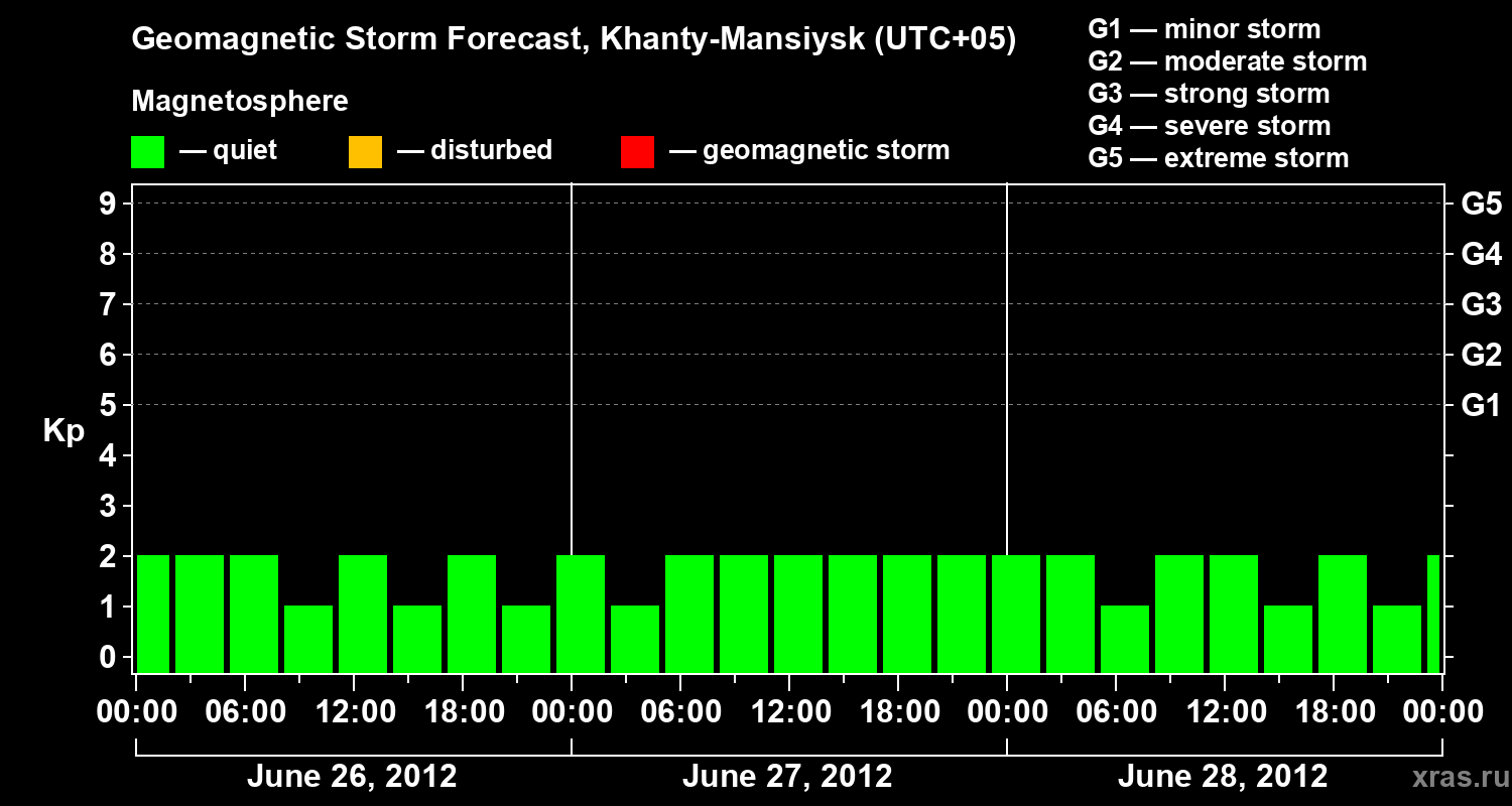 Geomagnetic storm forecast in Khanty-Mansiysk for Jun 26, 2012