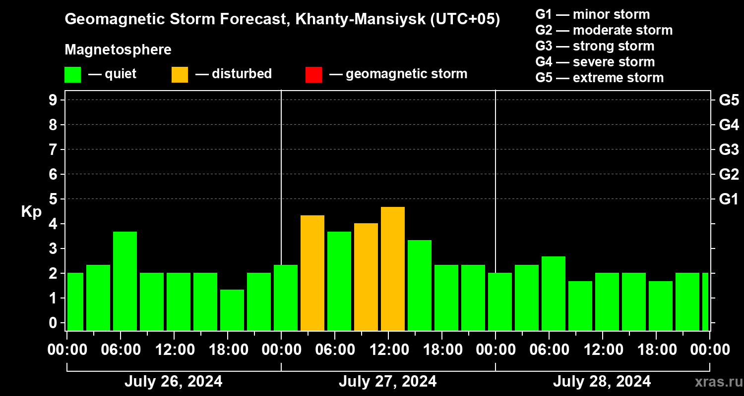 Geomagnetic storm forecast in Khanty-Mansiysk for Jul 26, 2024