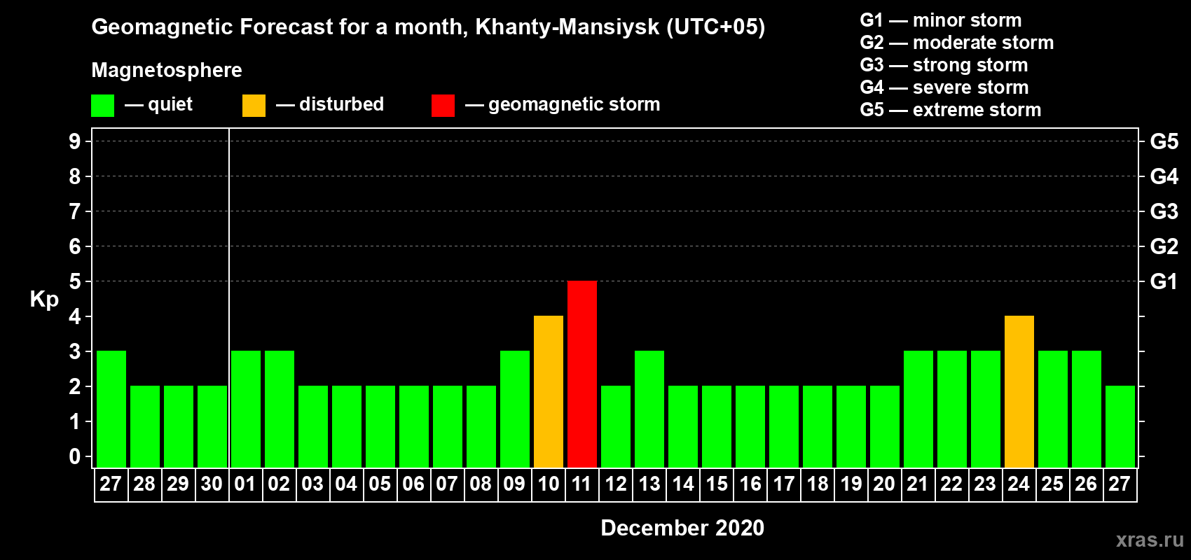 Geomagnetic activity forecast in Khanty-Mansiysk — Nov 27, 2020