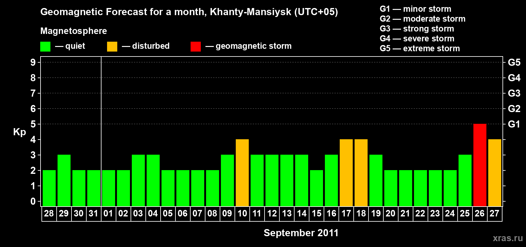Geomagnetic storm forecast in Khanty-Mansiysk for Aug 28, 2011