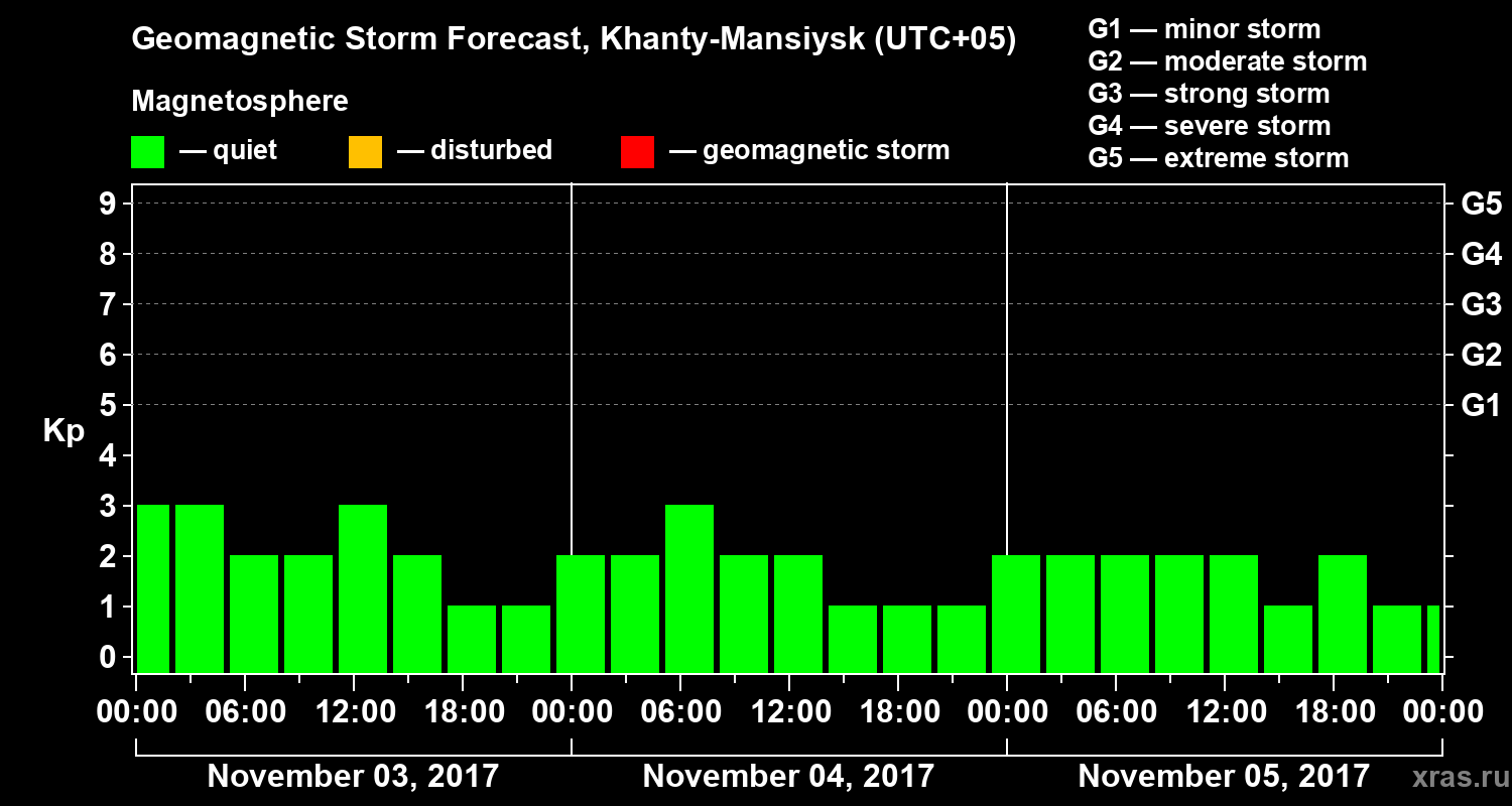 Geomagnetic activity forecast in Khanty-Mansiysk — Nov 03, 2017
