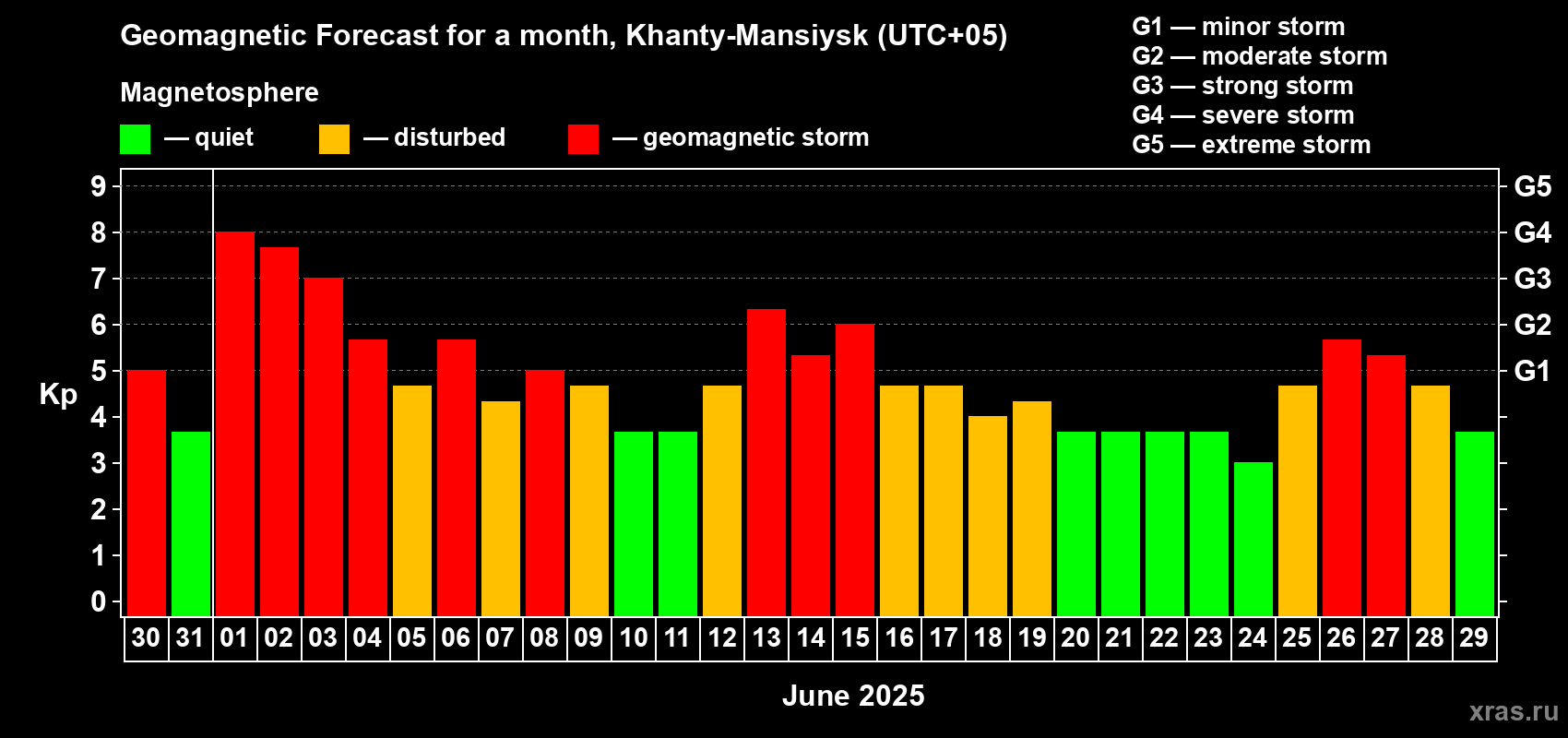 Geomagnetic storm forecast in Khanty-Mansiysk for May 30, 2025