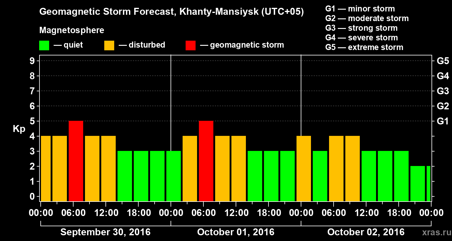 Geomagnetic storm forecast in Khanty-Mansiysk for Sep 30, 2016