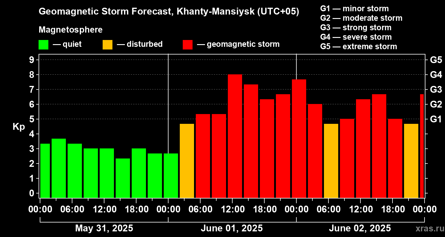 Geomagnetic storm forecast in Khanty-Mansiysk for May 31, 2025
