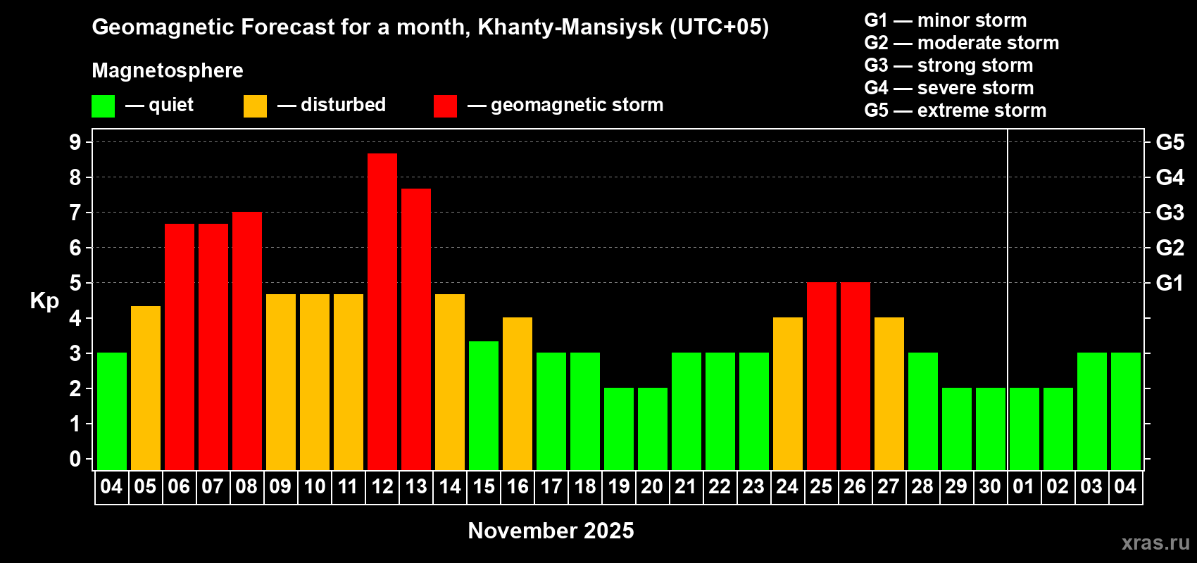 Geomagnetic storm forecast in Khanty-Mansiysk for Nov 04, 2025
