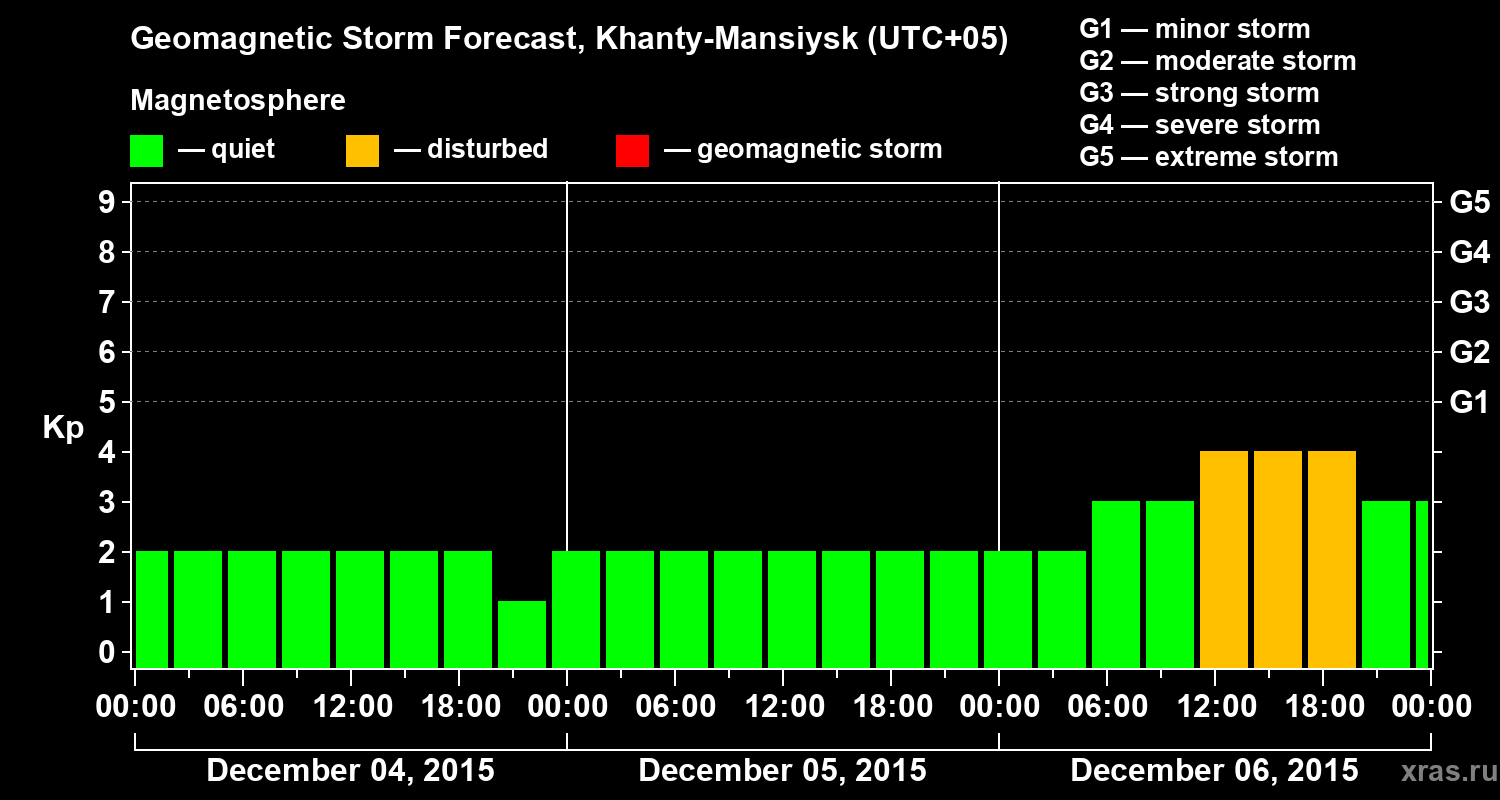 Geomagnetic activity forecast in Khanty-Mansiysk — Dec 04, 2015