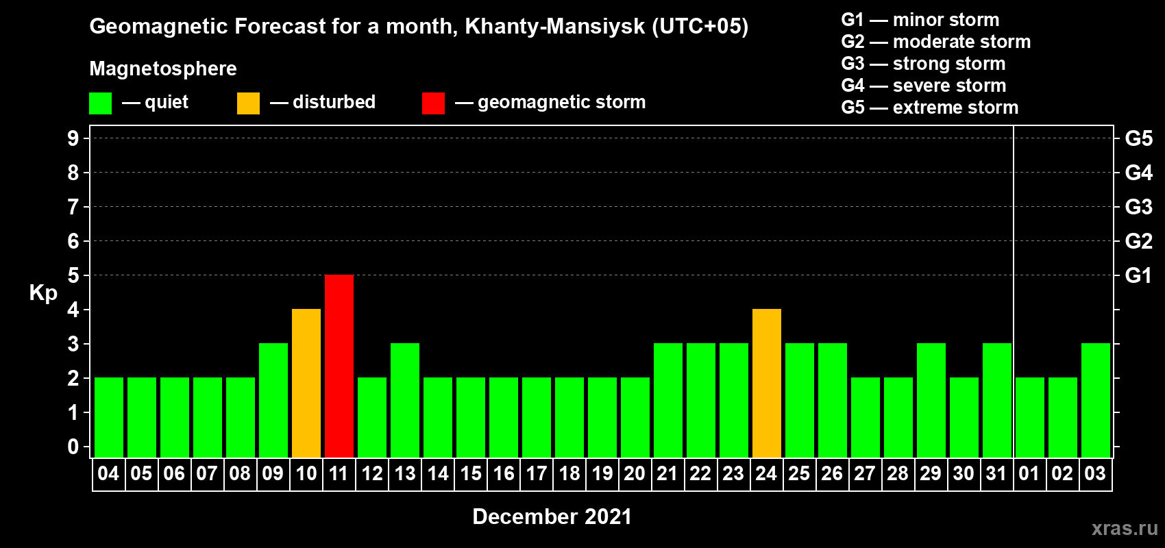 Geomagnetic activity forecast in Khanty-Mansiysk — Dec 04, 2020
