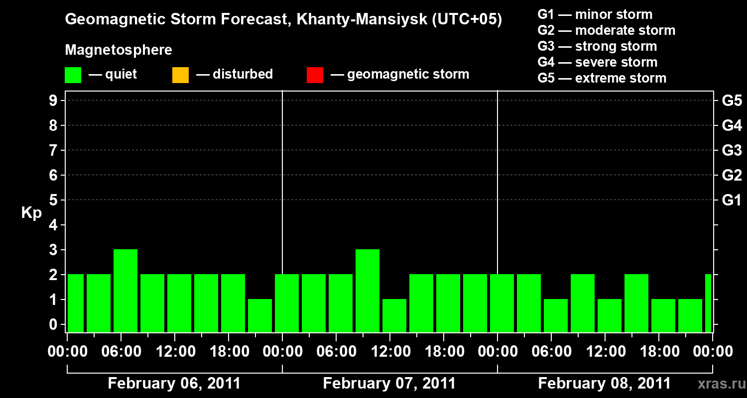 Geomagnetic storm forecast in Khanty-Mansiysk for Feb 06, 2011