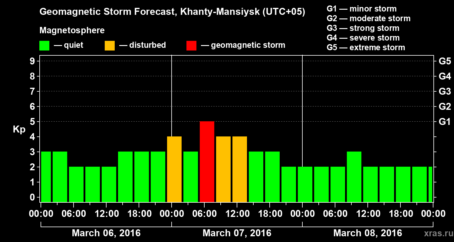 Geomagnetic storm forecast in Khanty-Mansiysk for Mar 06, 2016