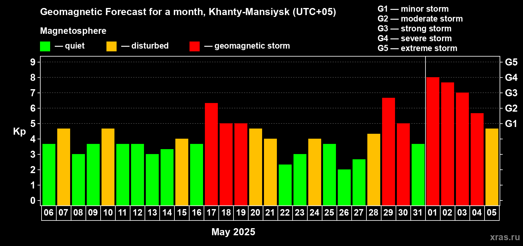 Geomagnetic storm forecast in Khanty-Mansiysk for May 06, 2025