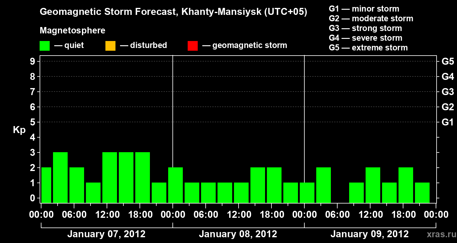 Geomagnetic storm forecast in Khanty-Mansiysk for Jan 07, 2012